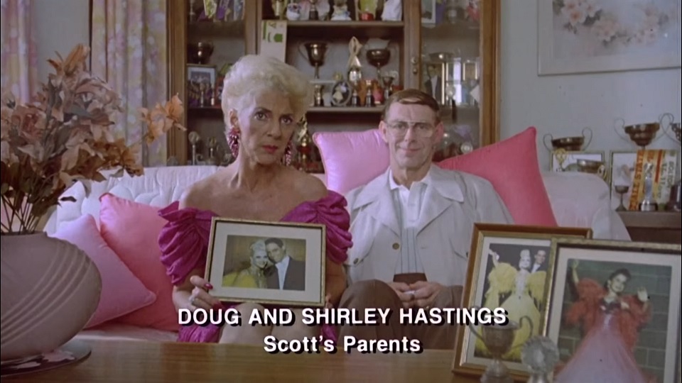 Strictly Ballroom gets off to a quasi-documentary start, introducing us to the setting and characters quickly. We see all the showiness and rigid hierarchy of the dancing community (not to mention the insane outfits!), and how little any kind of freedom is tolerated. It's surprising to discover! I just figured dancers in these communities could do whatever steps they wanted. I had no idea they were so restricted.